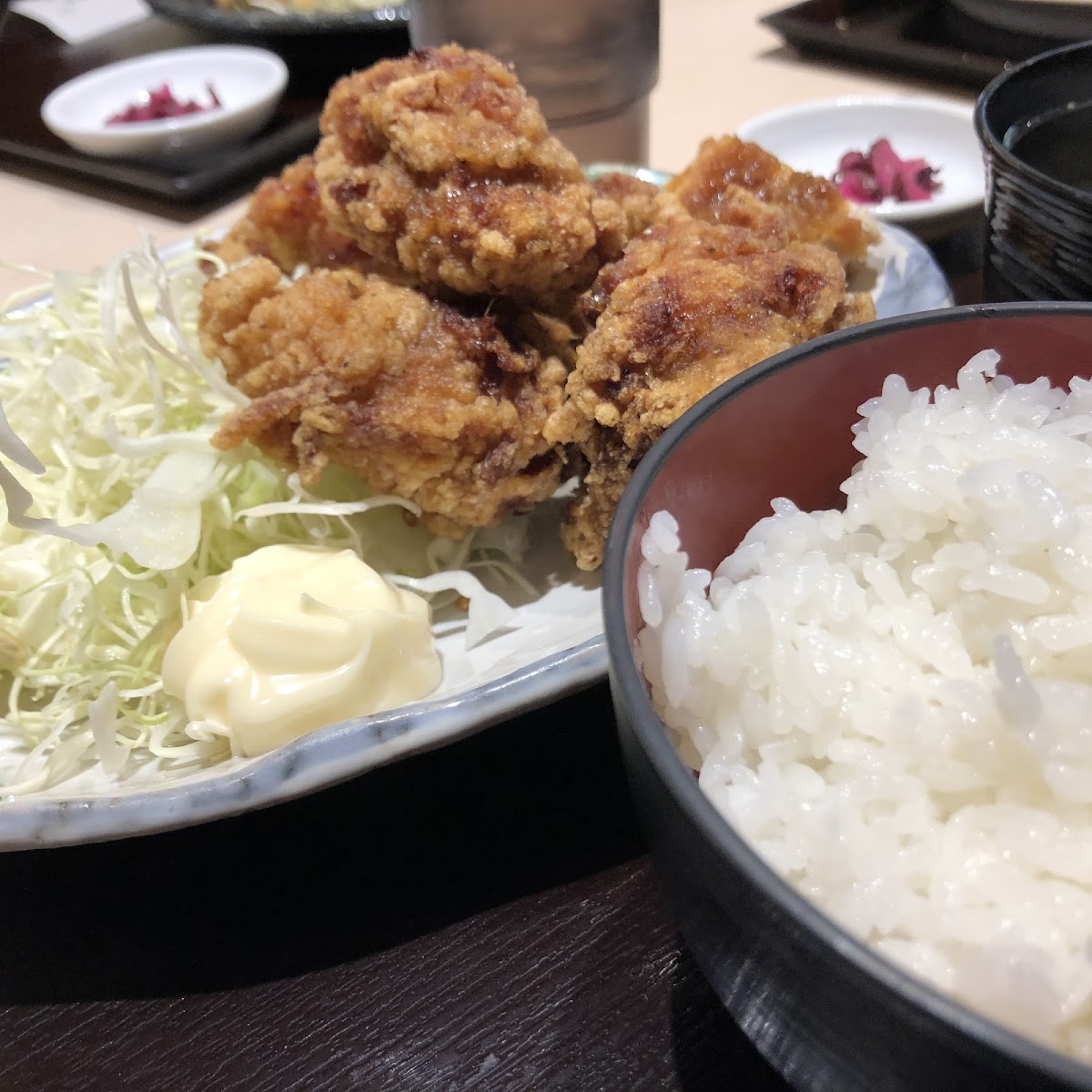 The menu focuses on hearty Japanese set meals that hit the spot whether you’re stopping by for lunch or settling in for a laid-back dine-in experience. One of the standout favorites is the 大判チキンカツ定食, featuring a generously sized chicken cutlet that’s crispy on the outside and tender inside. It arrives neatly plated, balanced with rice and sides that make the whole meal feel complete rather than rushed. Another crowd-pleaser is the 鳥の唐揚げ定食, where juicy fried chicken delivers bold flavor without being greasy.